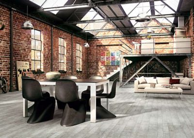 The Second World War, which brought great destruction and a new restructuring around the world, revealed a new production style. A higher quality and faster industrial production has emerged, which pushes more cost into account. New materials such as synthetic adhesives, polyester, acrylic, polyethylene resin were developed for the manufacture of furniture. The turbine factory complex with glass curtain walls, designed in 1909 by German painter, graphic artist, architect and industrial designer Peter Behrens, one of the pioneers of the modern movement, became one of the milestones in the history of architecture. Considered the world’s first great industrial designer, Behrens is known as the father of corporate identity for his work for AEG. In industrial interior architecture, high ceilings, functional furniture, aged wood, brick and metal designs show themselves.
